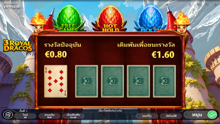 สล็อต 3 Royal Dracos ใช้โครงสร้างมาตรฐาน 5 รีล 3 แถว พร้อม 20 เพย์ไลน์คงที่ ผู้เล่นไม่สามารถปรับจำนวนไลน์ได้ แต่สามารถปรับเดิมพันได้ตั้งแต่ 0.10 ถึง 50-100 ยูโรต่อสปิน ทำให้เหมาะสำหรับงบประมาณทุกระดับ ข่าวจาก Gamblenexus ระบุว่าการเดิมพันต่ำสุด 0.10 ทำให้เกมนี้เข้าถึงได้ง่ายสำหรับผู้เล่นทุกวัย โดยเฉพาะมือใหม่ที่ไม่อยากเสี่ยงมาก