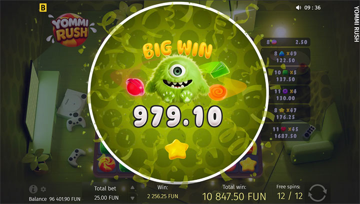 ตารางจ่ายรางวัลใน สล็อต Yommi Rush ออกแบบให้สมดุล โดยผู้เล่นสามารถคาดหวังการชนะบ่อยครั้งจากคลัสเตอร์เล็กๆ แต่รางวัลใหญ่จะมาจากชุดใหญ่หรือฟีเจอร์โบนัส ทำให้เกมนี้เหมาะกับ สล็อต volatility กลาง ที่ไม่ผันผวนมากเกินไป